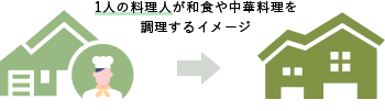 魚料理は魚専門工場へ、肉料理は肉専門工場へ製造委託します。